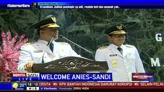 Prosesi serah terima jabatan (sertijab) Gubernur DKI Anies Baswedan dan Wakil Gubernur DKI Sandiaga Uno berlangsung kondusif dan semarak. Seusai ...
